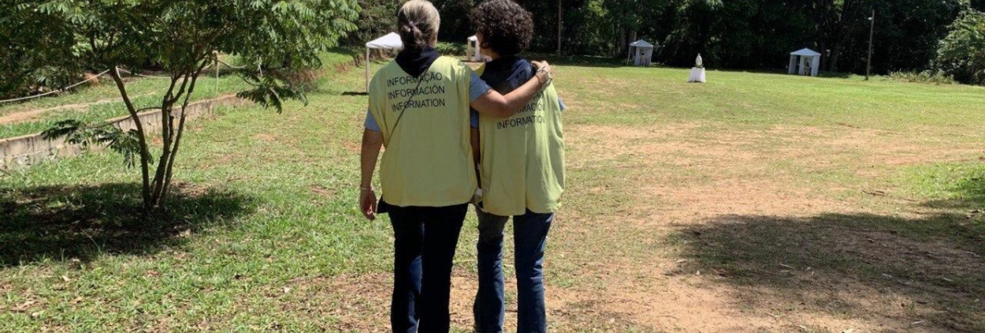 En los encuentros de oración, los acogedores utilizan un uniforme que los identifica: chaleco amarillo, pañuelo azul marino y un distintivo, y están bajo la coordinación de la Casa de María, Nuestra Señora de los Pobres.
